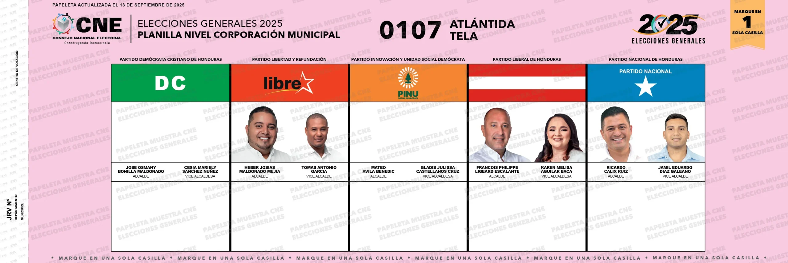 0 Carga electoral Electores habilitados para ejercer el sufragio. Porcentaje de electores que votaron en 2021 (para nivel presidencial): 58.48% La alcaldía fue ganada por el Partido Nacional (2021). Papeleta electoral Actualizado al 13 de septiembre. Datos destacados: 0107 Código del municipio.