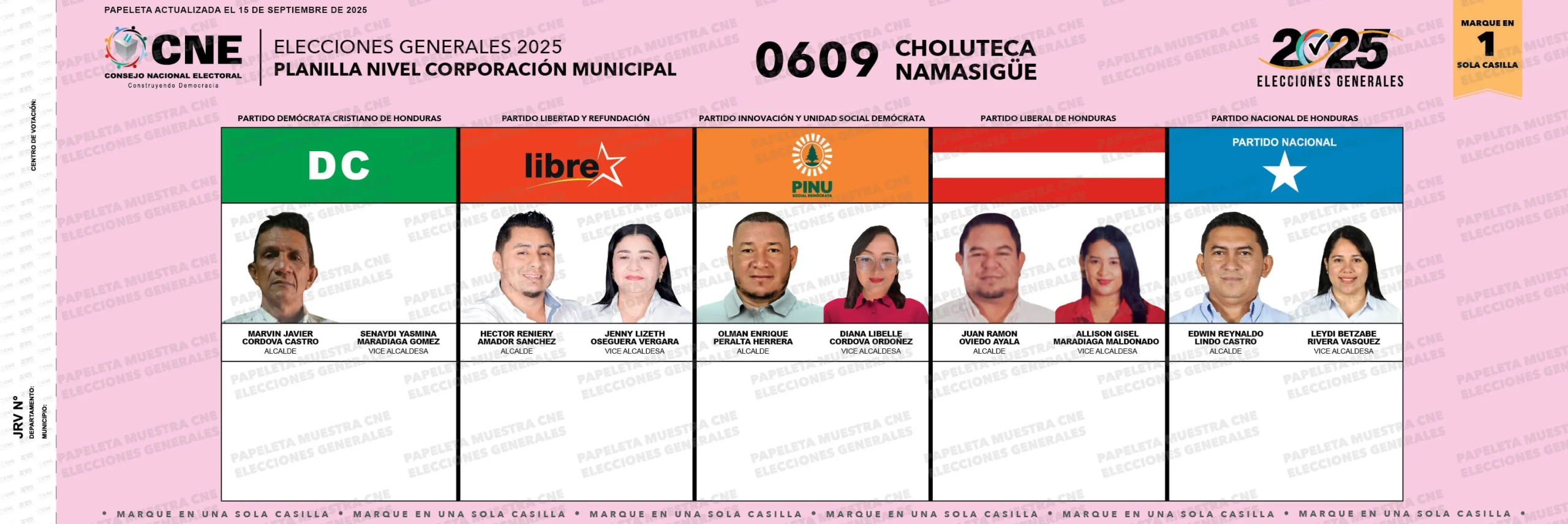 0 Carga electoral Electores habilitados para ejercer el sufragio. Porcentaje de electores que votaron en 2021 (para nivel presidencial): 77.52% La alcaldía fue ganada por el Partido Libre (2021). Papeleta electoral Actualizado al 16 de septiembre. Datos destacados: 0609 Código del municipio.