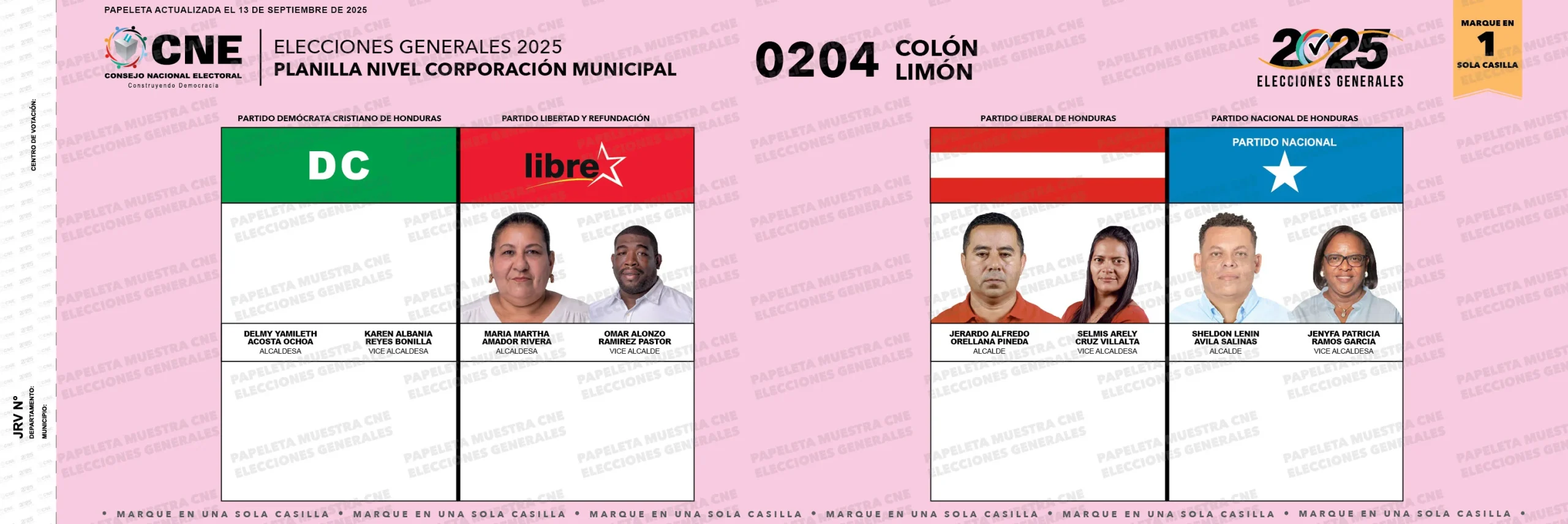 0 Carga electoral Electores habilitados para ejercer el sufragio. Porcentaje de electores que votaron en 2021 (para nivel presidencial): 59.64% La alcaldía fue ganada por el Partido Nacional (2021). Papeleta electoral Actualizado al 16 de septiembre. Datos destacados: 0204 Código del municipio.