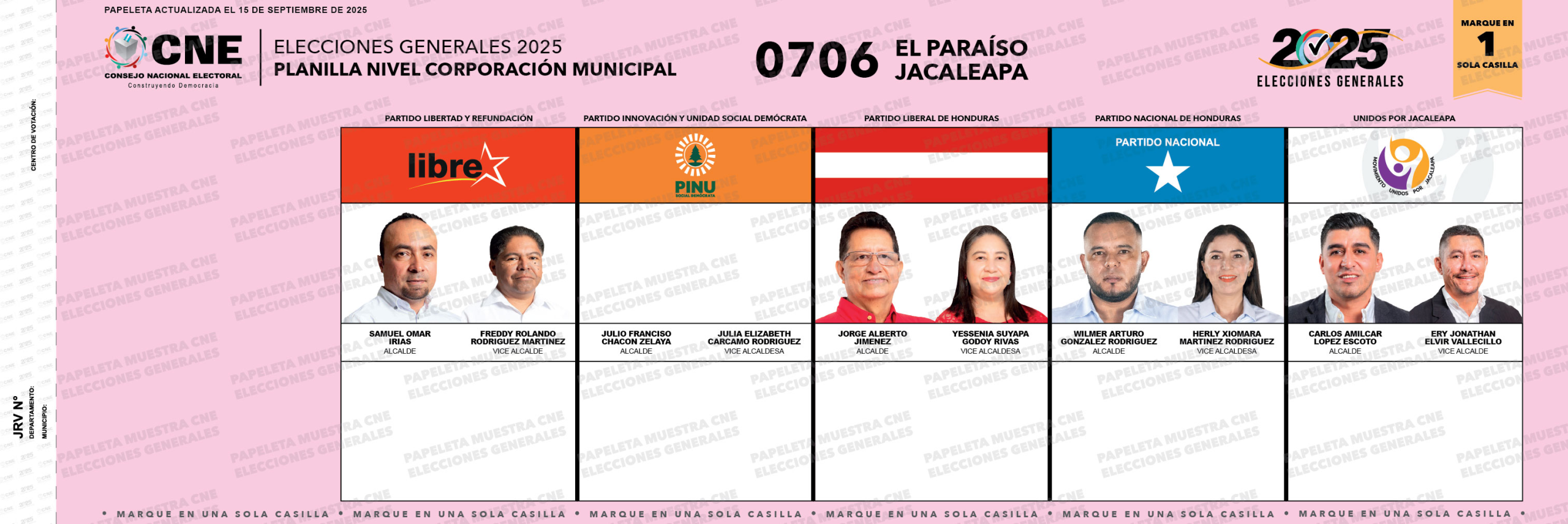 0 Carga electoral Electores habilitados para ejercer el sufragio. Porcentaje de electores que votaron en 2021 (para nivel presidencial): 87.52% La alcaldía fue ganada por el Partido Liberal (2021). Papeleta electoral Actualizado al 16 de septiembre. Datos destacados: 0706 Código del municipio.