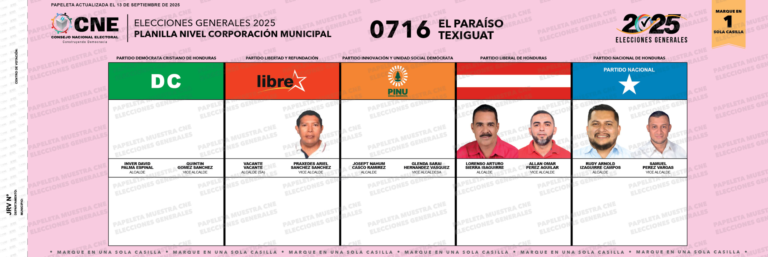 0 Carga electoral Electores habilitados para ejercer el sufragio. Porcentaje de electores que votaron en 2021 (para nivel presidencial): 88.59% La alcaldía fue ganada por el Partido Liberal (2021). Papeleta electoral Actualizado al 13 de septiembre. Datos destacados: 0716 Código del municipio.