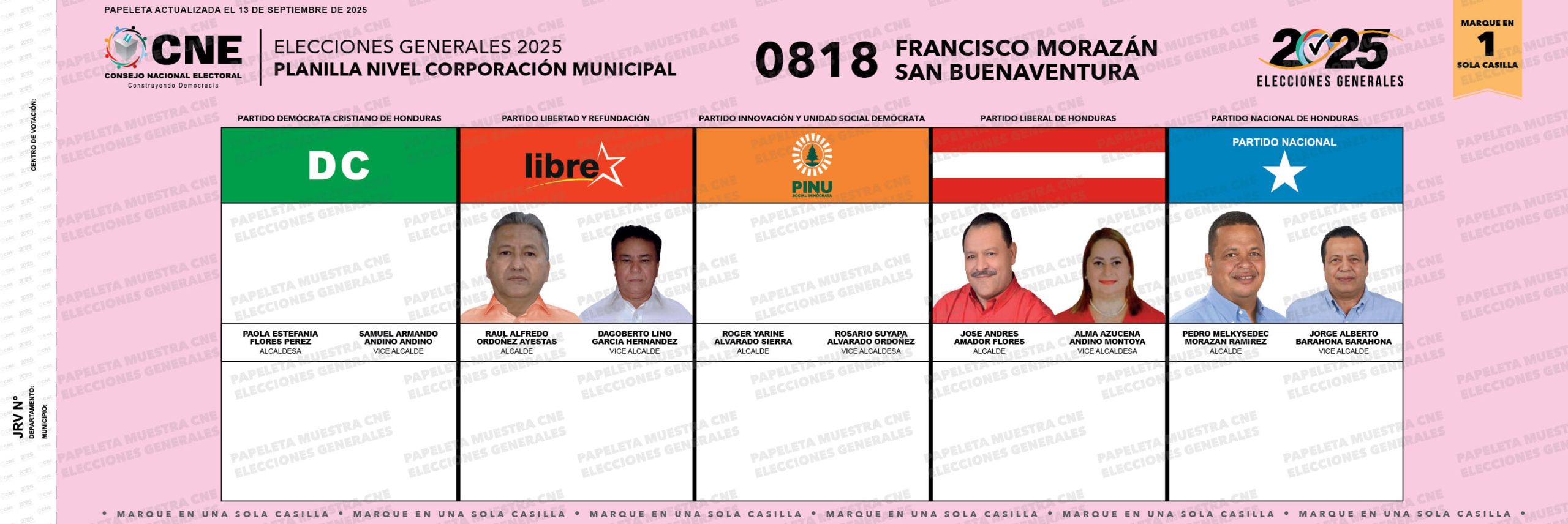 0 Carga electoral Electores habilitados para ejercer el sufragio. Porcentaje de electores que votaron en 2021 (para nivel presidencial): 91.07% La alcaldía fue ganada por el Partido Liberal (2021). Papeleta electoral Actualizado al 16 de septiembre. Datos destacados: 0818 Código del municipio.