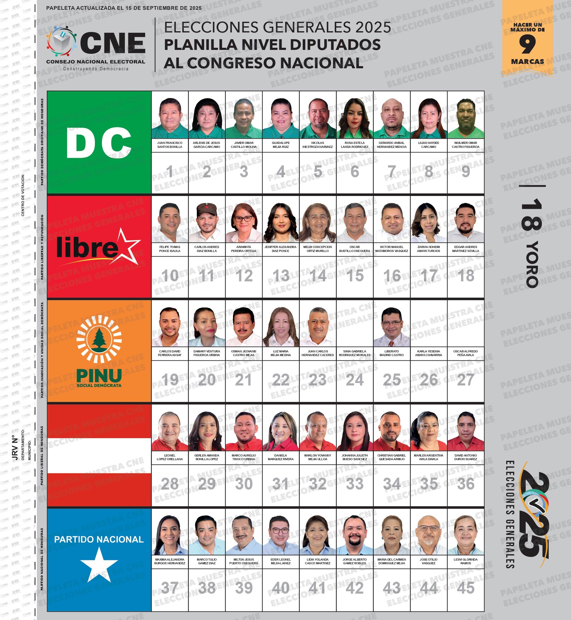 Yoro Mapa interactivo 0 Carga electoral Electores habilitados para ejercer el sufragio. Porcentaje de electores que votaron en 2021 (para nivel presidencial): 64.8% 9 Diputados a elegir en el departamento. Papeleta electoral Actualizada al 15 de septiembre. Datos destacados: Los diputados de este departamento están distribuidos así:4 de Partido Libre3 de Partido Nacional1 de Partido Salvador de Honduras1 de Partido Liberal Es el departamento con mayor carga electoral.